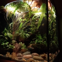 Vest-Afrikansk regnskog elv inspirert planteakvarie/aquascape (Kongo/Niger). Ikke ordentlig biotop akvarie, men mest av planter og dyr er fra område. Mitt første akvarium etter 15 års pause.